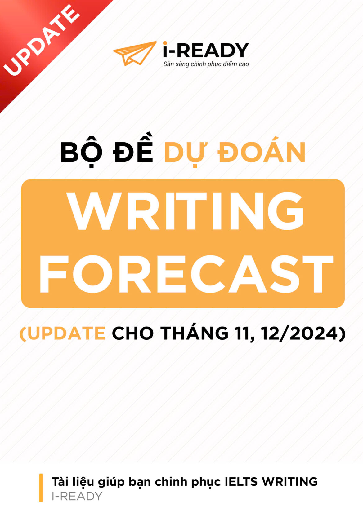 Bộ đề dự đoán Writing Forecast cho 2 Tasks bao gồm các đề mới được cập nhật thêm cho 2 tháng cuối năm là tháng 11 và tháng 12/2024. Các bài mẫu đã được chấm chữa cẩn thận bởi Ex-Examiner để giúp các em ôn luyện được tốt hơn ở kỹ năng viết này.