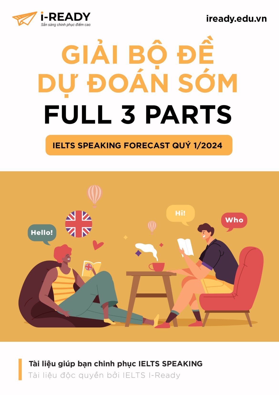 Đây là bản giải bộ đề dự đoán “Sớm” IELTS Speaking Forecast Quý 1/2024, lời giải mẫu chi tiết cho 26 chủ đề của Part 1 và 27 chủ đề của Part 2 & 3 để các em tham khảo trong quá trình ôn luyện của mình.
