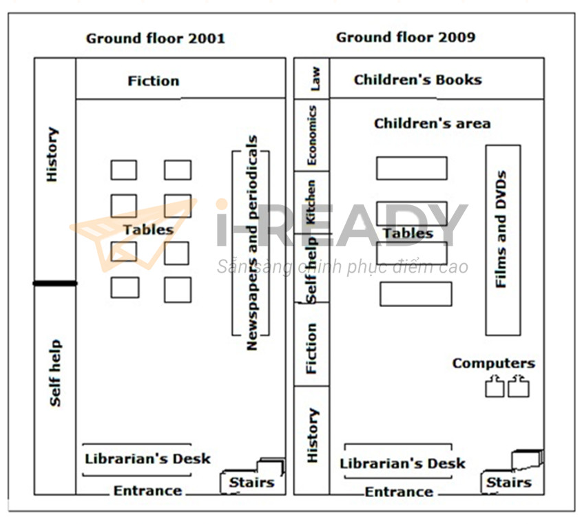 Question: The diagram below shows the plan of a library in 2001 and 2009.